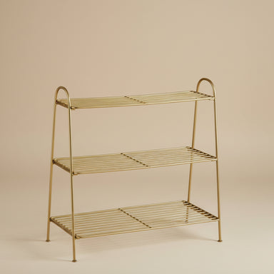 Sleek and sophisticated, this matte gold metal shelf rack combines contemporary style with practical storage. The warm metallic finish complements ...